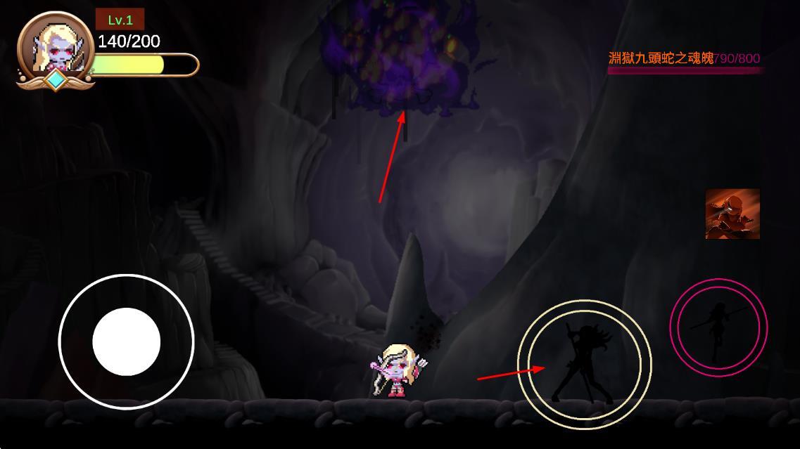 进入游戏后先选择初始关卡,通过练习熟悉虚拟按键对应的移动、攻击和技能释放操作,同时观察并掌握当前boss的基础攻击方式与行动规律。