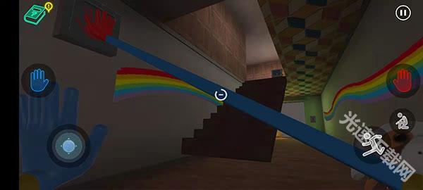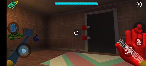 6、手套收集完成后会自动装备到手中,此时墙的两侧会出现红色与蓝色的手印,玩家只需将手套对准对应的区域,就能打开房门。
