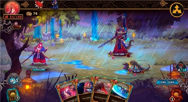 4、每一轮开始之际,你会从牌组里抽取五张卡牌添加到手牌中。只要行动点足够且没有受到负面效果的干扰,你就能依照自己的策略来打出卡牌。当敌人发动攻击时,拖动防御类卡牌到场上,以此抵挡即将降临的威胁。
