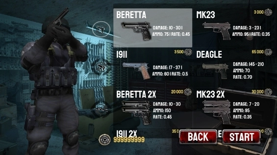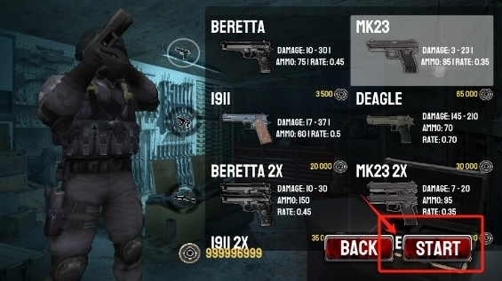 7、我们可以挑选不同的枪支,心仪哪一款就选购哪一款,接着点击“start”按钮。