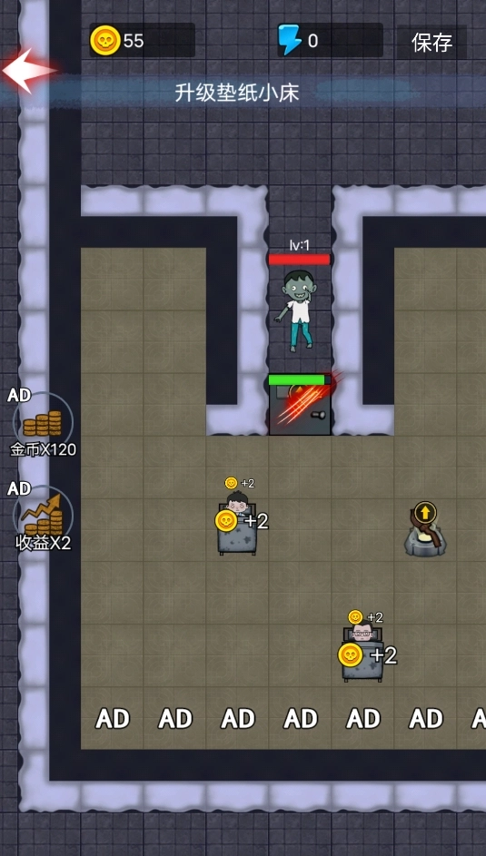 3、进入房间后直接上床,通过睡觉积累金币、打造装备。无论遇到任何情况都绝对不能下床,就算有怪人破门进来,也务必待在床上不要下来。