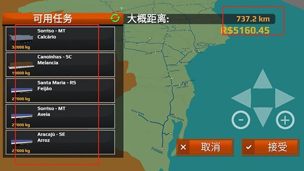 4、不同任务的距离与费用各不相同,点击任务后选择接受即可。