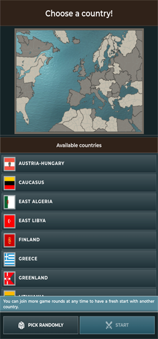 1、后打开游戏,需要选择国家。
