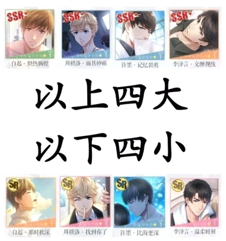 给大家科普一下,图中展示的是我们恋与游戏里的四大天王卡、四小天王卡和四小天鹅卡。