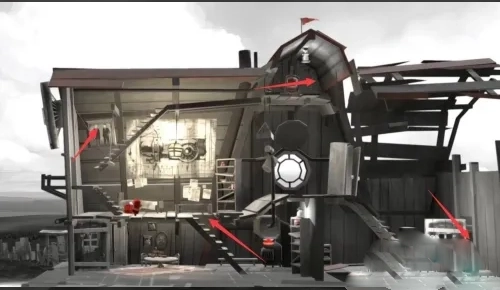 第四步:灯亮后,先向左上方走,走到最右侧时跳下楼梯,接着就能从右边的门离开啦。