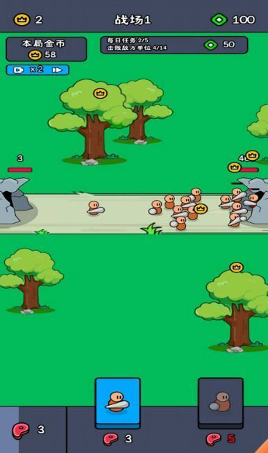 这款游戏的操作方式十分简便,玩家仅需点击召唤小兵,这些小兵便会自行投入战斗。