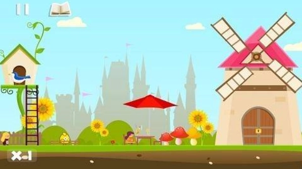 ②等姐姐去追小鸡的时候,你就跟着她,然后到桌子上把【钥匙】拿上,再去【蘑菇】那里躲起来。