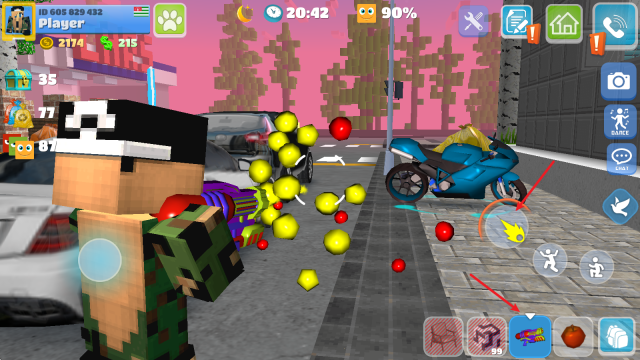 2、点击右下角的快捷栏能够切换武器,点击就能进行射击。