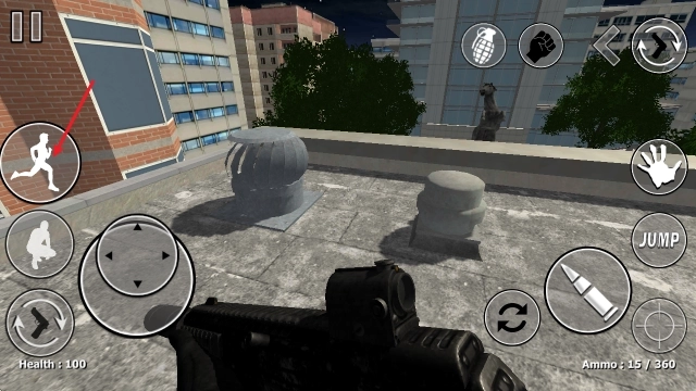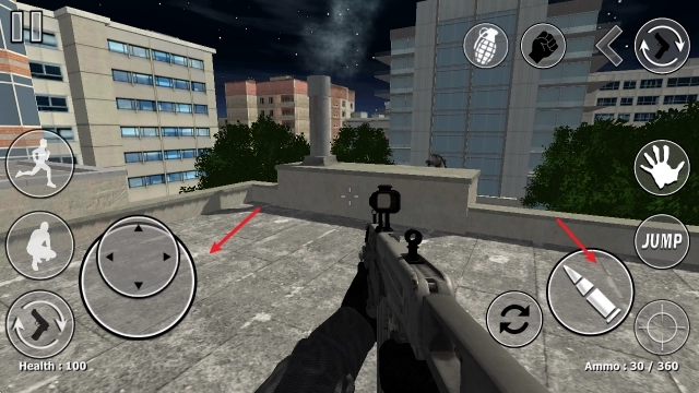 1、进入游戏后,在左侧屏幕区域拖动手指就能控制角色移动,点击右侧的子弹图标即可发起射击。