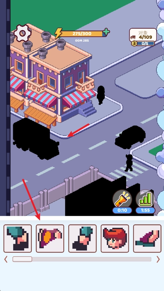1、进入游戏后,就能够看到众多黑色阴影和下方的各种拼图碎片。