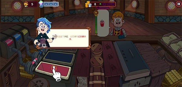 1、打开梦幻药剂2游戏,顾客想要红色药水,点击水缸,注入红色精华液;