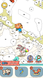 4、你可以自由移动画作,也能借助放大镜查找对应数字的图形,进而把它们完整地拼出来。