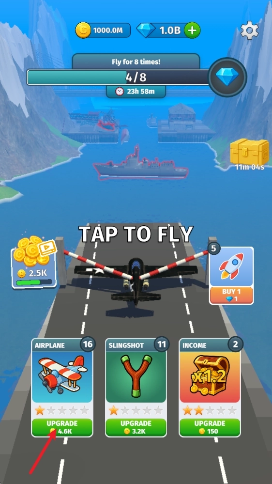 5、结束飞行后都可以用金币来提升弹力弓或者飞机。