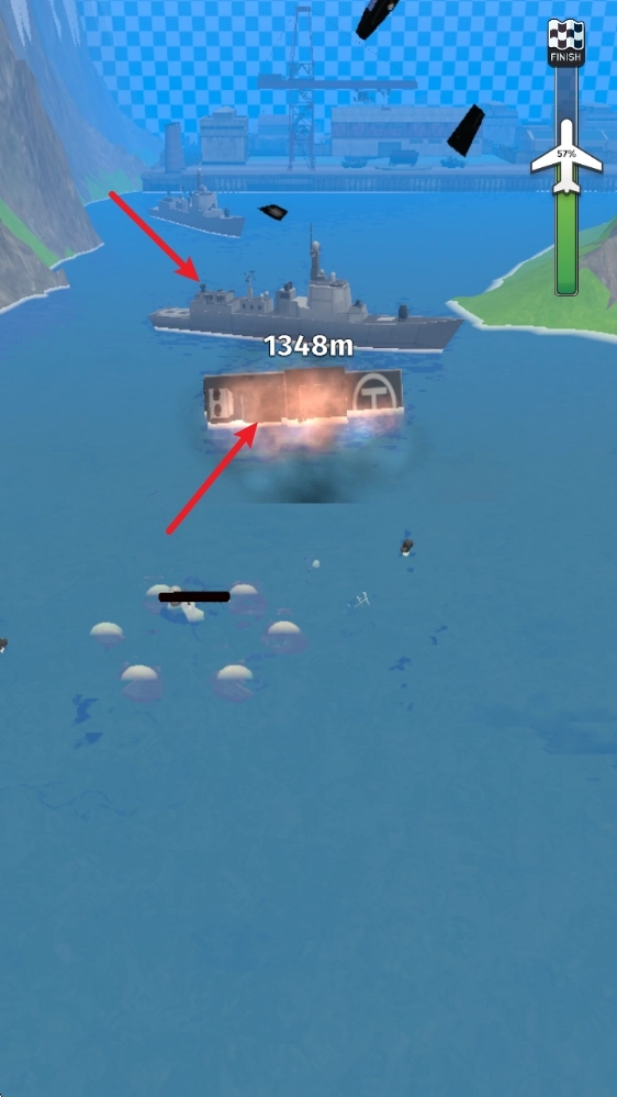 点击起飞,在充满活力的地图上飞行,去轰炸各种战舰、飞机!