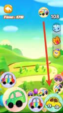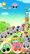 进入游戏后,首先要跟着新手引导掌握基本玩法:用手指在场地里拖动相同的可爱汽车,让它们挨得近一些,就能合成出一辆更高级的新汽车啦。