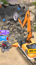 2、用获得的金币解锁下一台工程车,驾驶新车辆在矿场里铲挖石头,可自由调整移动方向。