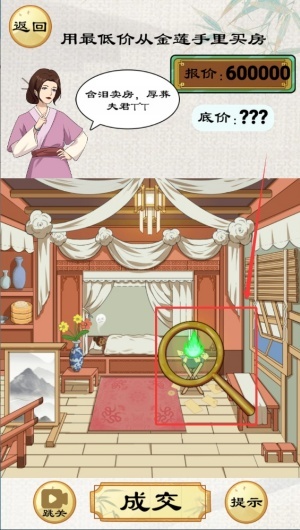 3、借助放大镜功能细致查看场景里的每个细节,留意并点击那些可疑的地方来触发相关事件,以此达到降低房屋价值的目的。在这个过程中,敏锐的观察力和足够的耐心是实现目标的重要关键。