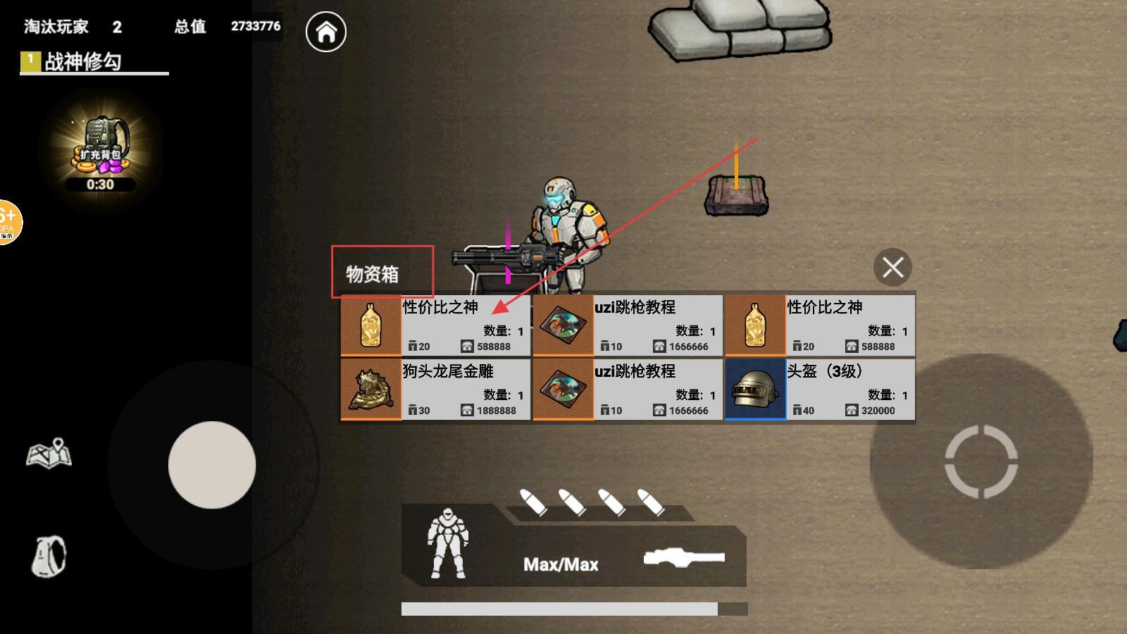 3、开启物资箱后,会弹出物资选择界面,其中包含多种道具,你可以依据自身需求挑选合适的物资,以此提升自身的实力。