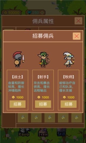 7、设有战士、射手、牧师三种职业,玩家可自由搭配组建佣兵队伍。