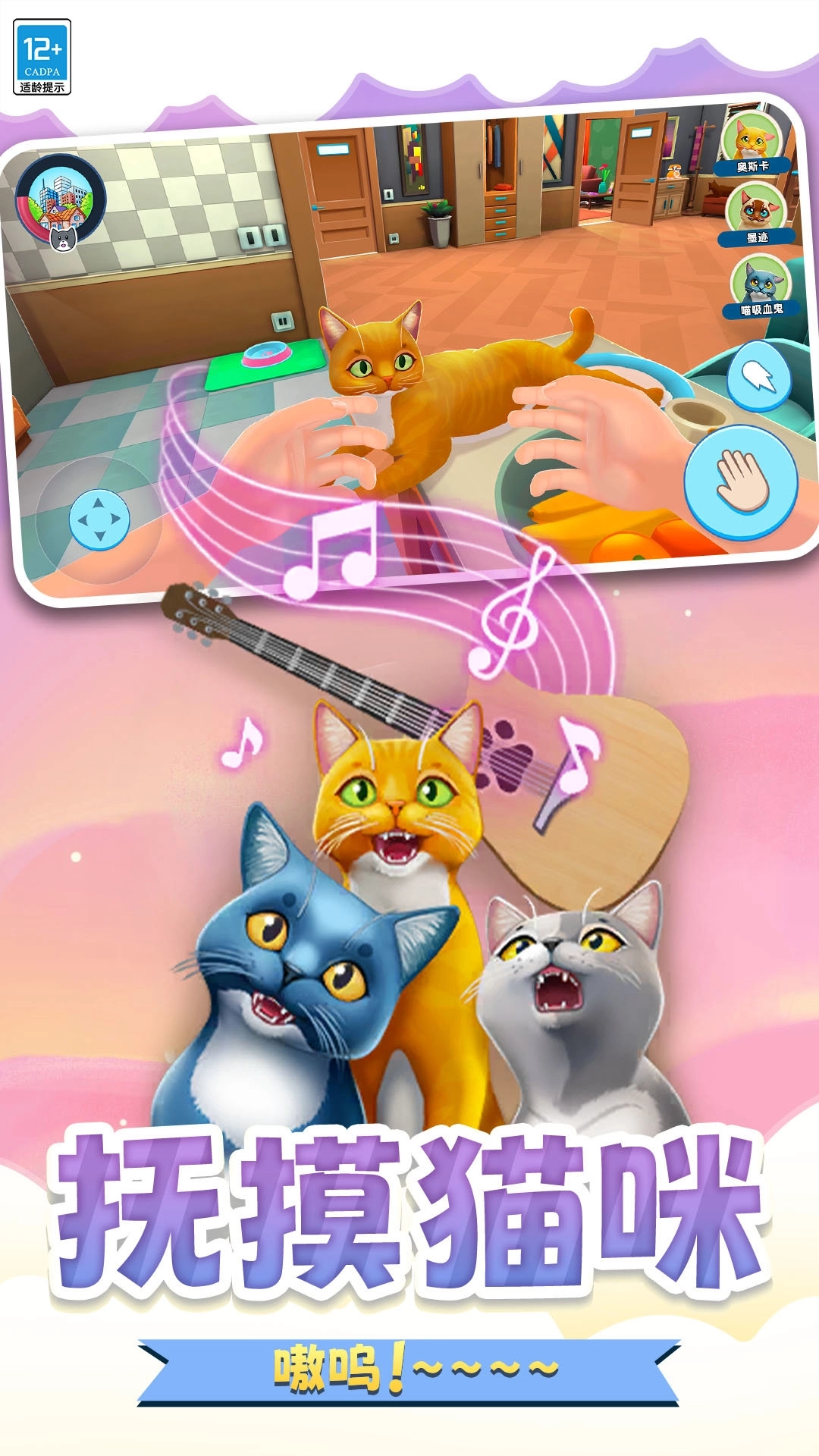 2、深度养成体验:通过喂食、玩耍、装扮等方式,提升猫咪的好感度,解锁更多互动剧情和特殊技能。