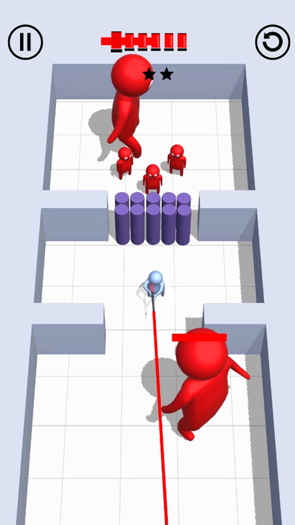 《吃我一枪》是一款卡通风格的射击游戏,玩家将操控卡通橡皮人角色,利用其手中的枪械展开射击挑战。游戏每一关都设有若干需要击败的敌人,而枪支的子弹数量有限,因此玩家需要用尽可能少的子弹消灭所有敌人,以达成完美通关的目标。