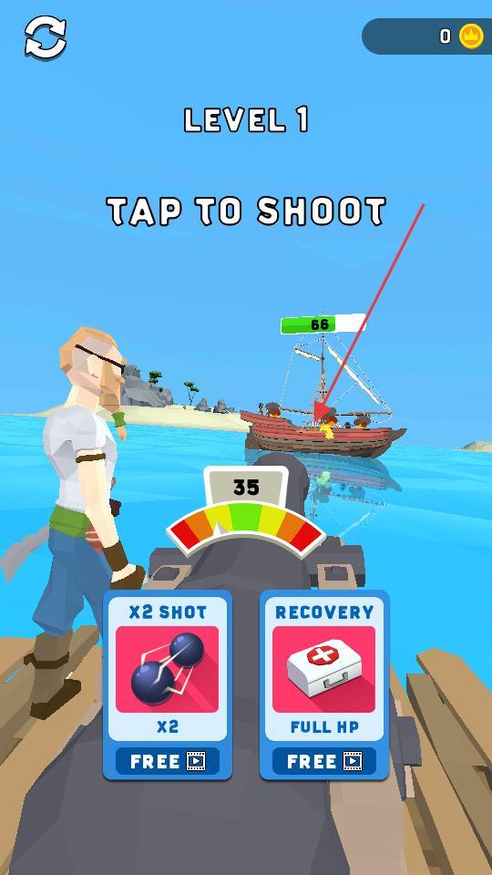 3、靠近帆船后,进入TAPTOSHOOT界面,留意炮弹威力进度条,找准合适时机点击射击,还能借助2SHOT等技能提升攻击效果。