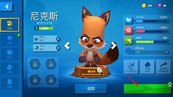 1、进入动物王者游戏后选择你的角色,有均衡、结实、攻击性三种角色,选取;