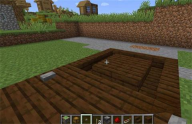 1、第一步先挖一个长7、宽4、深5的坑,把8个粘性活塞放进去,再在活塞上方铺好木板。