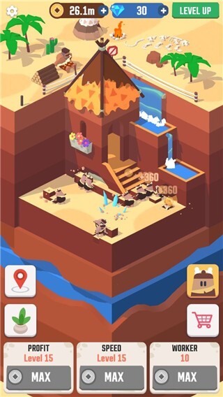在这款游戏里,你需要招募更多原始人来为你效力,升级工具以提高挖掘速度;在挑战过程中,你得管理好自己的工人,建造出美观的房屋,同时还能赚取金币、获取更多工具。你要负责建设原始部落,逐步提升等级,解锁全新材料,甚至可以设计出各种各样的艺术品。