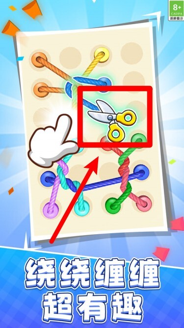 当碰到难以解开的绳子时,不妨借助剪刀道具,这样就能迅速剪断它来摆脱困境。