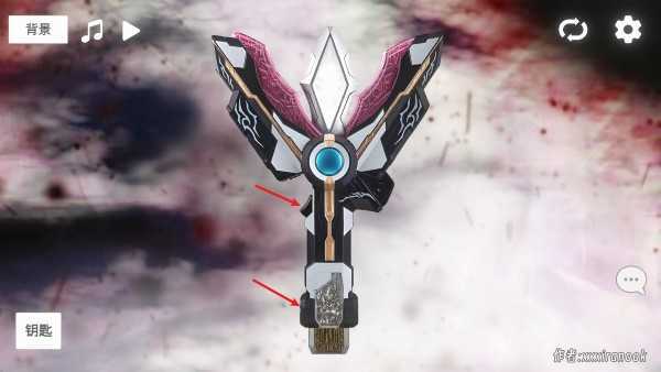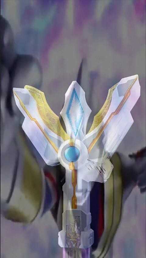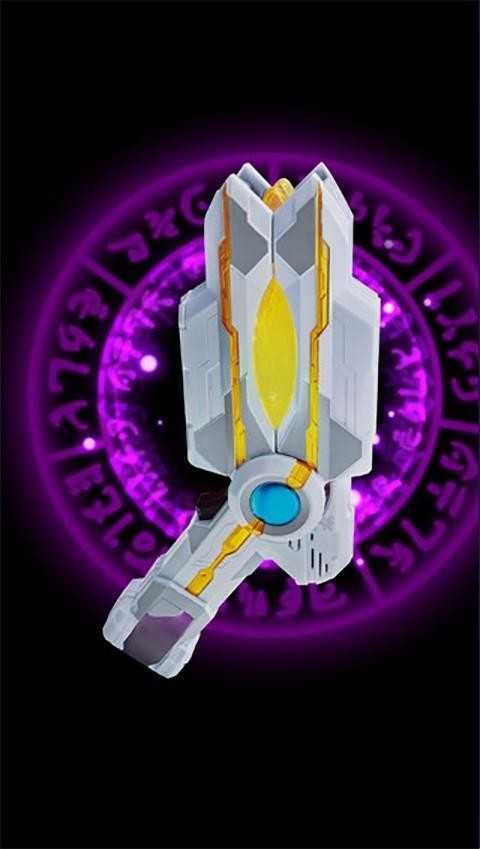 2、轻轻按下神光棒上的扳机键,发射出一道能量光束后,U盘样式的密钥收纳盒就会显现出来,里面装有特利迦以及联动形态的所有变身密钥。