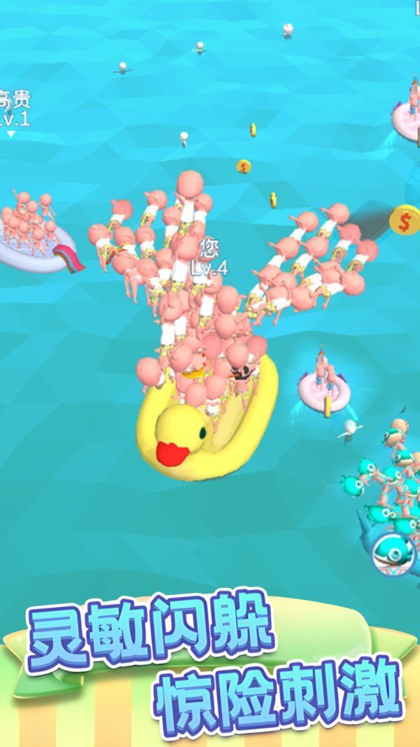 1、要在充满挑战的水环境里的泳池中存活下来,得完成躲避障碍、收集资源以及和其他玩家竞争这些任务;