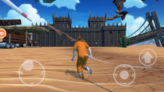 4、操控角色在较为平坦的沙面上奔跑,借助方向按钮灵活调整跑动方向,留意锁链的长度限制,防止因过度拉扯而降低移动效率。
