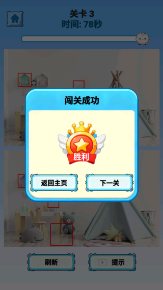 3、每一关都得找出所有的差异之处,这样才能顺利通过当前关卡并进入下一关。