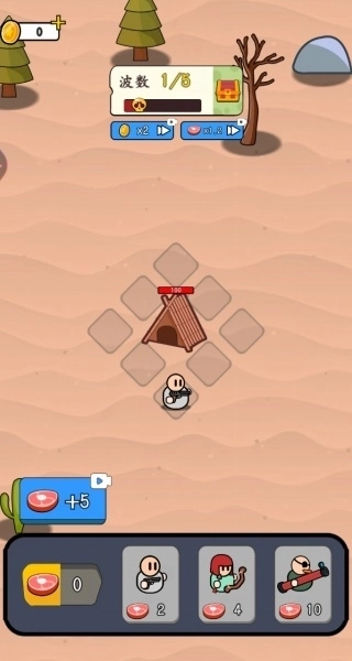 3、游戏界面下方设有不同类型的士兵单位,其中基础士兵仅需消耗2块肉即可召唤,放置到战场后便能自动投入战斗。