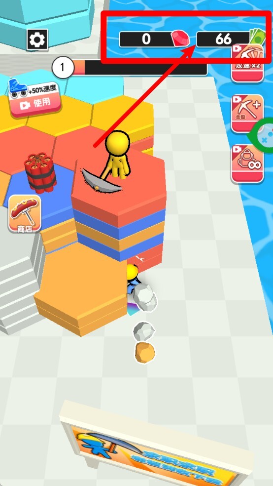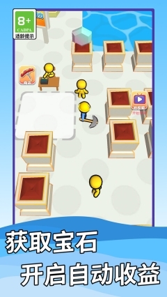 4.持续推进关卡进程:随着挖掘作业的逐步深入,砖块的坚硬程度不断增加,游戏的挑战难度也随之升级,玩家需要持续对工具进行升级优化,并且灵活地组合搭配各类道具,才能够顺利通过关卡。