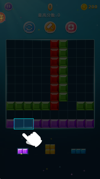 2. 无论是横排还是竖排的方块,一旦连成一条完整的直线,对应的行或列就会立即消除并累计分数,从而为接下来的布局创造空间。