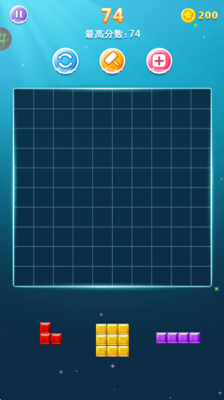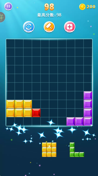 1. 从屏幕下方获取各种形状的方块,对它们进行移动、旋转操作后,放置到屏幕上方的空白区域,通过逐步堆叠让方块组合成型。