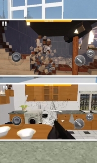 左手负责操控角色进行上下左右的移动,右手则用来调整玩家的视角,以便选定需要破坏的场景部分;玩家可以挑选不同的武器或是具备各异破坏效果的工具,随后点击圆形按钮就能开启拆除作业;需在规定时间内完成拆除任务,而拆除过程中获得的金币,可用于解锁更多的道具以及更多的游戏场景。