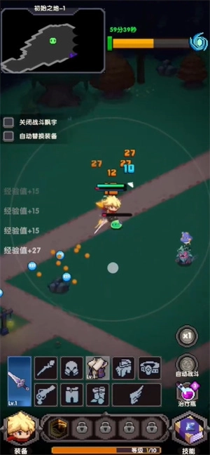 2、当发现怪物时会自动发起攻击,积累足够经验值后不仅能提升技能等级,还可以更换更高级的装备。