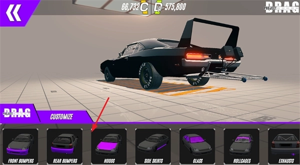 1、进入主界面后,点击下方的CARAGE选项,即可进入车库。