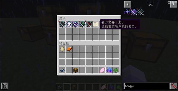 取出之前获得的名刀的三个卷轴,在工作台中进行无序合成,即可得到卷轴【妖刀】,并同时解锁进度“妖刀”。要是你已经完成了这一步,那真要恭喜你啦——这个模组四分之一的任务已经搞定!接下来,我们就可以着手制作妖刀了。