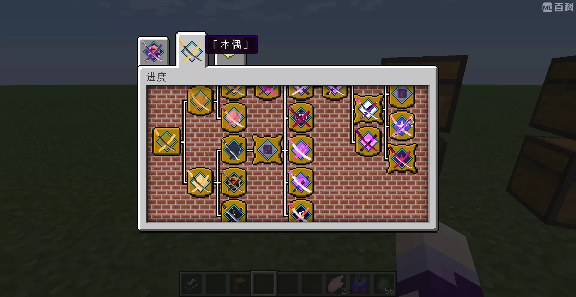 首先制作无铭刀【木偶】,完成制作后会解锁进度系统。请注意:我们仅关注名为“木偶”的进度(其图标是白鞘样式),而非原版拔刀剑对应的进度(图标为阎魔刀样式)。