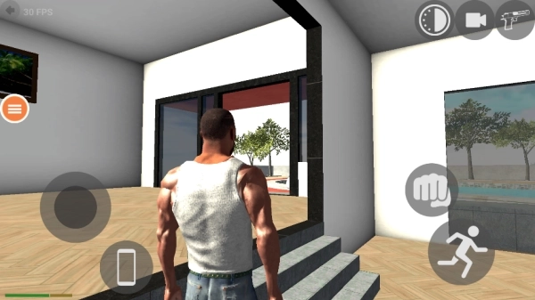 1、角色一开始位于卧室场景,玩家可借助左侧的虚拟摇杆来调整其移动方向,右侧的功能键则用于启动奔跑或攻击动作。