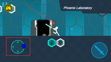 3、借助左下角的虚拟摇杆来操控火柴人角色的移动方向,让它能在关卡场景里行动,通过灵活变换位置来避开敌人的攻击、搜寻道具等。