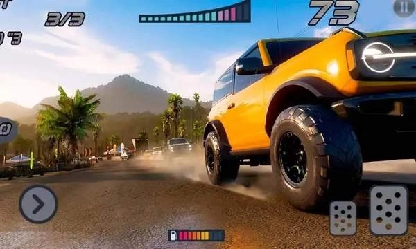 1、需要玩家控制越野车竞速,按照指定路线行进,尽快通过终点线;