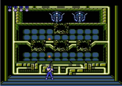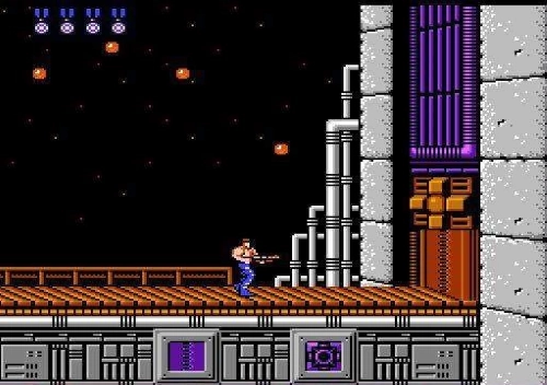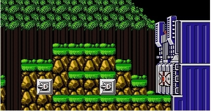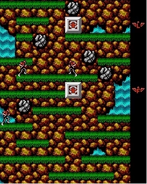 第二关第二间密室及之后的屏蔽门上额外装有炮台。步兵、跳兵、手榴弹兵这三种敌兵分布在屏蔽门下方;消灭红色士兵能够获取武器。