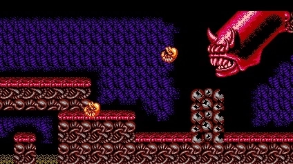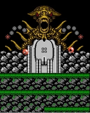 这一关里出现的敌人全是龙虾、螃蟹、蝎子这类异形生物——要知道《魂斗罗》的故事原型正是《异形》。开局时,玩家得先解决掉那个会放出龙虾的固定腊肠怪(龙虾移动迟缓,路线也没什么规律),这样才能打开前进的道路。在路面和顶部的棚架上,有不少会吐出螃蟹的大嘴(螃蟹的行动节奏是先慢后快,移动轨迹同样飘忽不定),玩家可以把这些大嘴逐个摧毁。而行动迅猛、贴着地面爬行的蝎子,算是这一关接近尾声的信号。当玩家成功击败“异形之心”后,这一关的挑战也就顺利完成了。