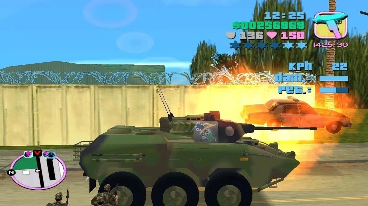 即便当年这款游戏只有英文字幕,也丝毫没有浇灭中国玩家的热情——这款海外游戏在国内彻底“杀疯了”,一时间风头无两,真正火遍了大江南北。那会儿还抱着小霸王游戏机的孩子们,自然抵挡不住这样的诱惑;它对当时的中国游戏圈而言,简直是降维打击,不少国人正是通过《罪恶都市》才认识了R星这家游戏公司。 虽说这一代主角有个“致命短板”——不会游泳,玩家们还因此调侃“汤米易溶于水”;但真正让大家着迷的,是游戏里能输入的各种秘籍:输入后仿佛拥有了“刀枪不入”的Buff,能上天入地、为所欲为——闲得无聊时开着坦克在街上“横扫”,在这片虚拟土地上当一回“人间之神”,这种自由驰骋的爽感,是其他游戏很难给到的。