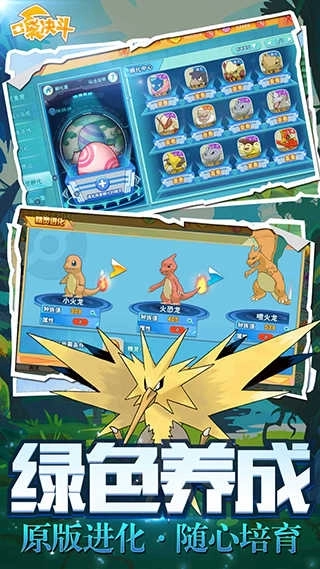 《口袋决斗》延续了经典口袋妖怪的世界观,精灵的成长路径严格遵循动画设定,进化过程自然流畅,没有复杂的升星或突破机制,培养过程既轻松又充满策略性。战斗系统继承了原作回合制的核心,节奏轻快、技能搭配注重策略,PVP对战紧张刺激,全世代宝可梦全部登场,野外捕捉完全免费且没有次数限制。